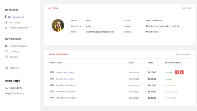 Chariti can send payment receipt automatically via user’s email in beautiful and proper format. User also login to dashboard to view donation receipt directly as well.